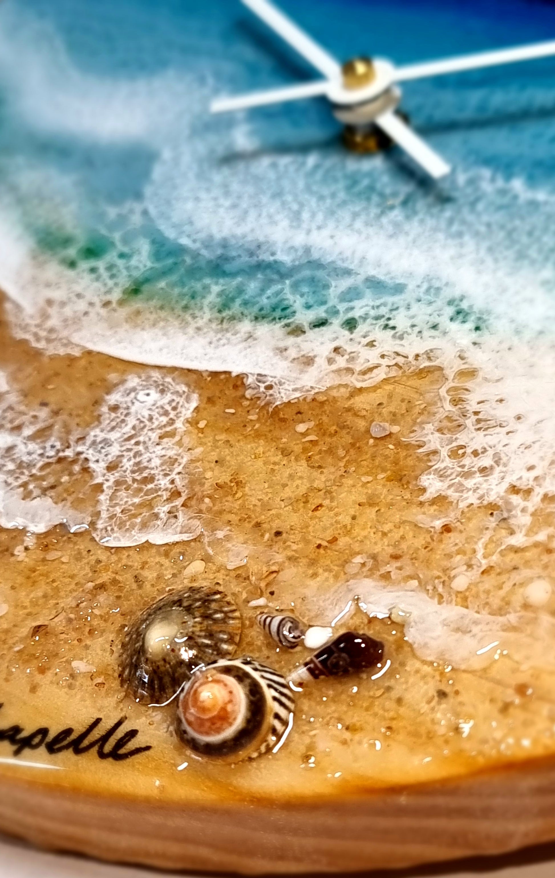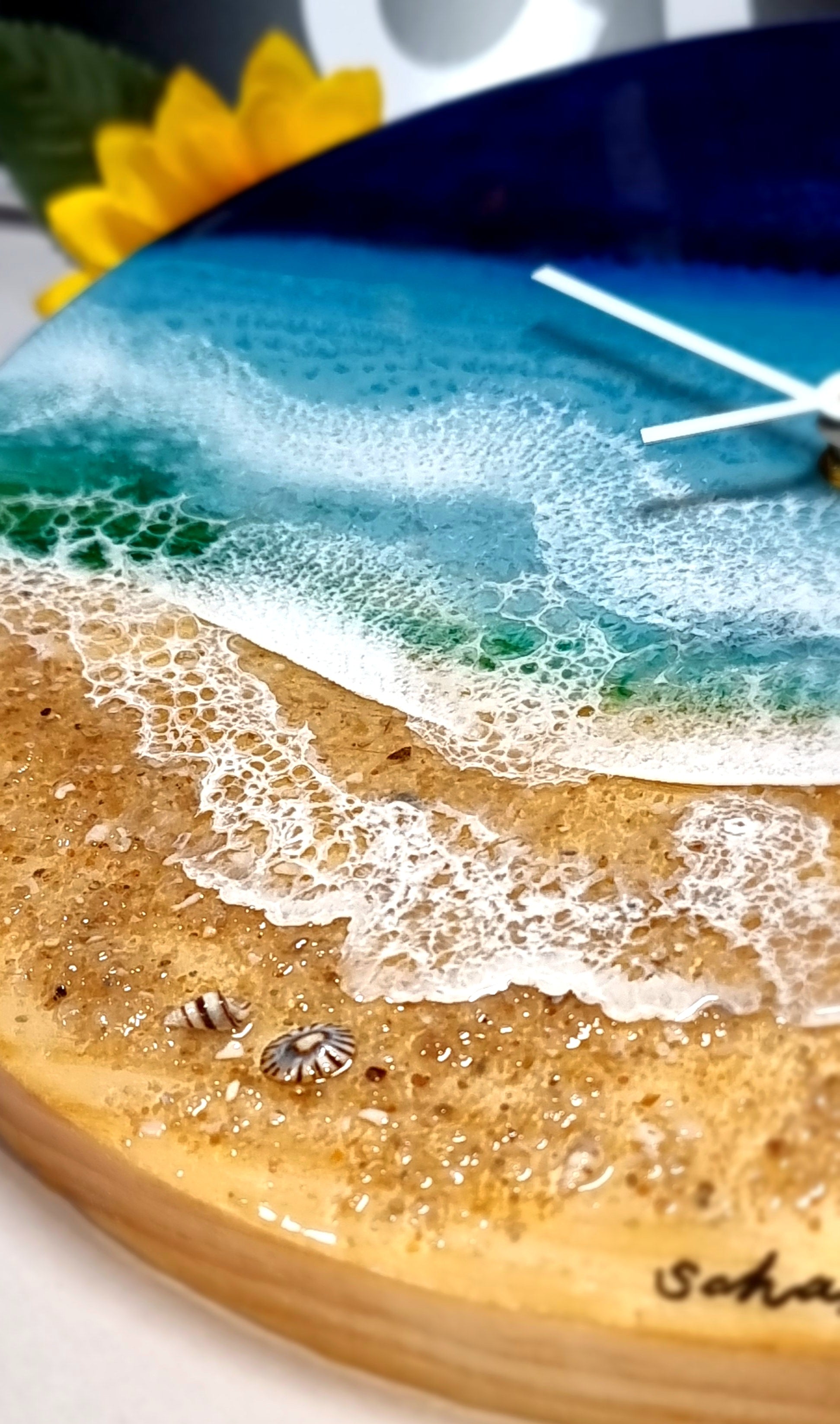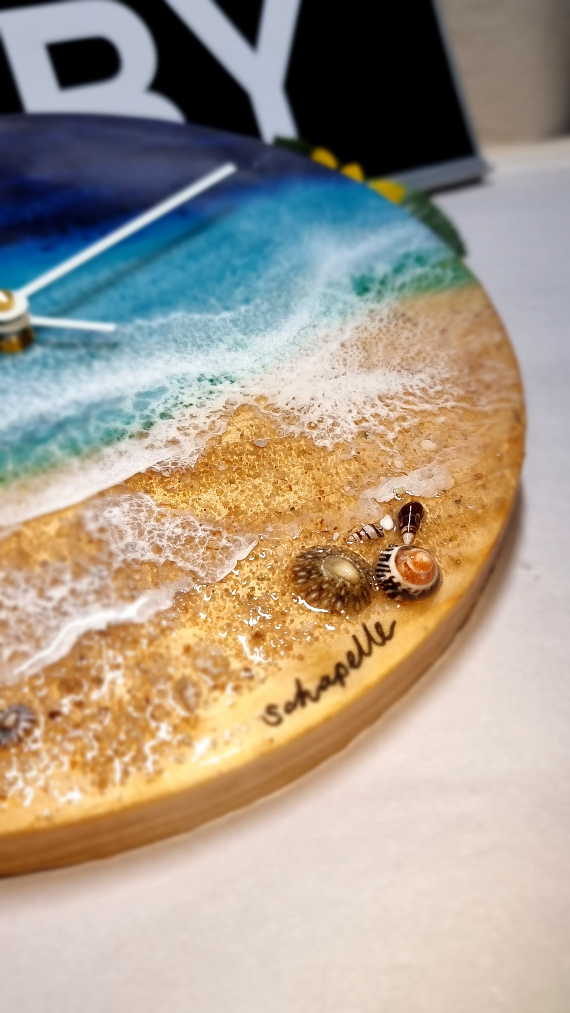 •Epoxy Resin •Wall Clock •On Wood •OG Ocean Theme •Few Shells •Sand •2xWaves •Layers •Texture •Quartz Clock Mechanism •Silent •Hands Reversable White/Black •Epoxy UV Protected •Ready To Hang •Size=28cmx2cm Regular •Signed And Numbered •Free Shipping Australia Wide