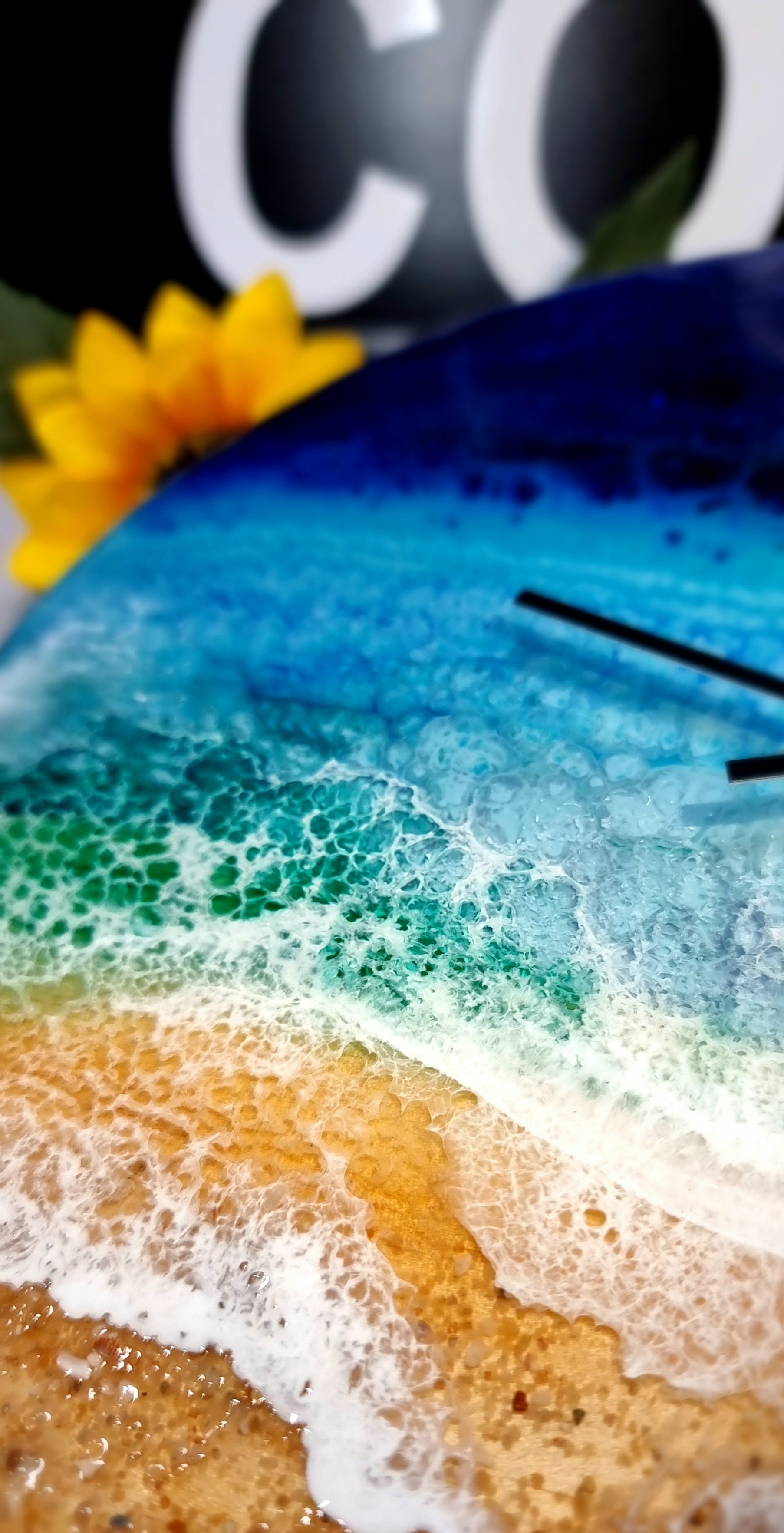 •Epoxy Resin •Wall Clock •On Wood •OG Ocean Theme •Few Shells •Sand •2xWaves •Layers •Texture •Quartz Clock Mechanism •Silent •Hands Reversable Black/White •Epoxy UV Protected •Ready To Hang •Size=28cmx2cm Regular •Signed And Numbered •Free Shipping Australia Wide