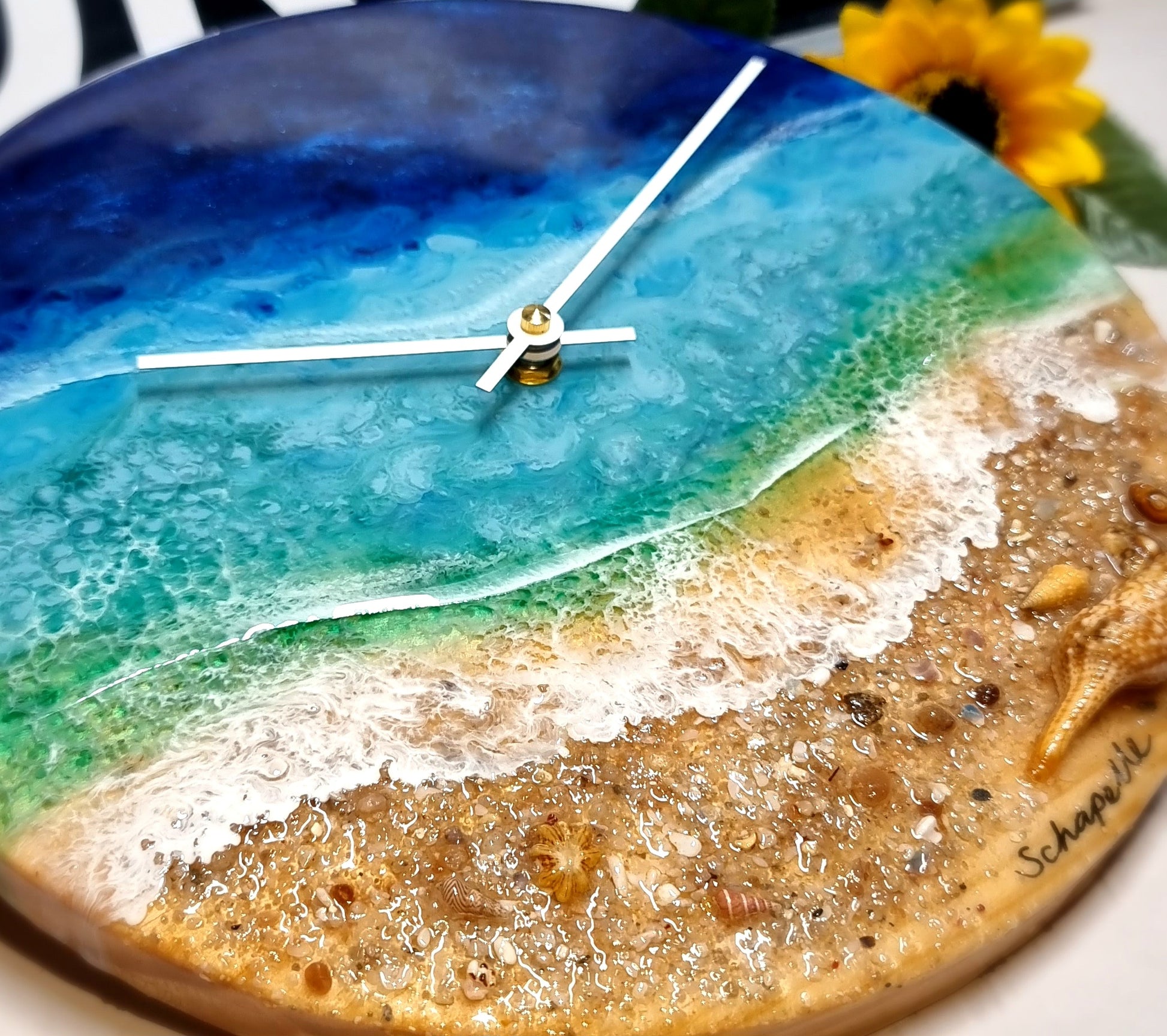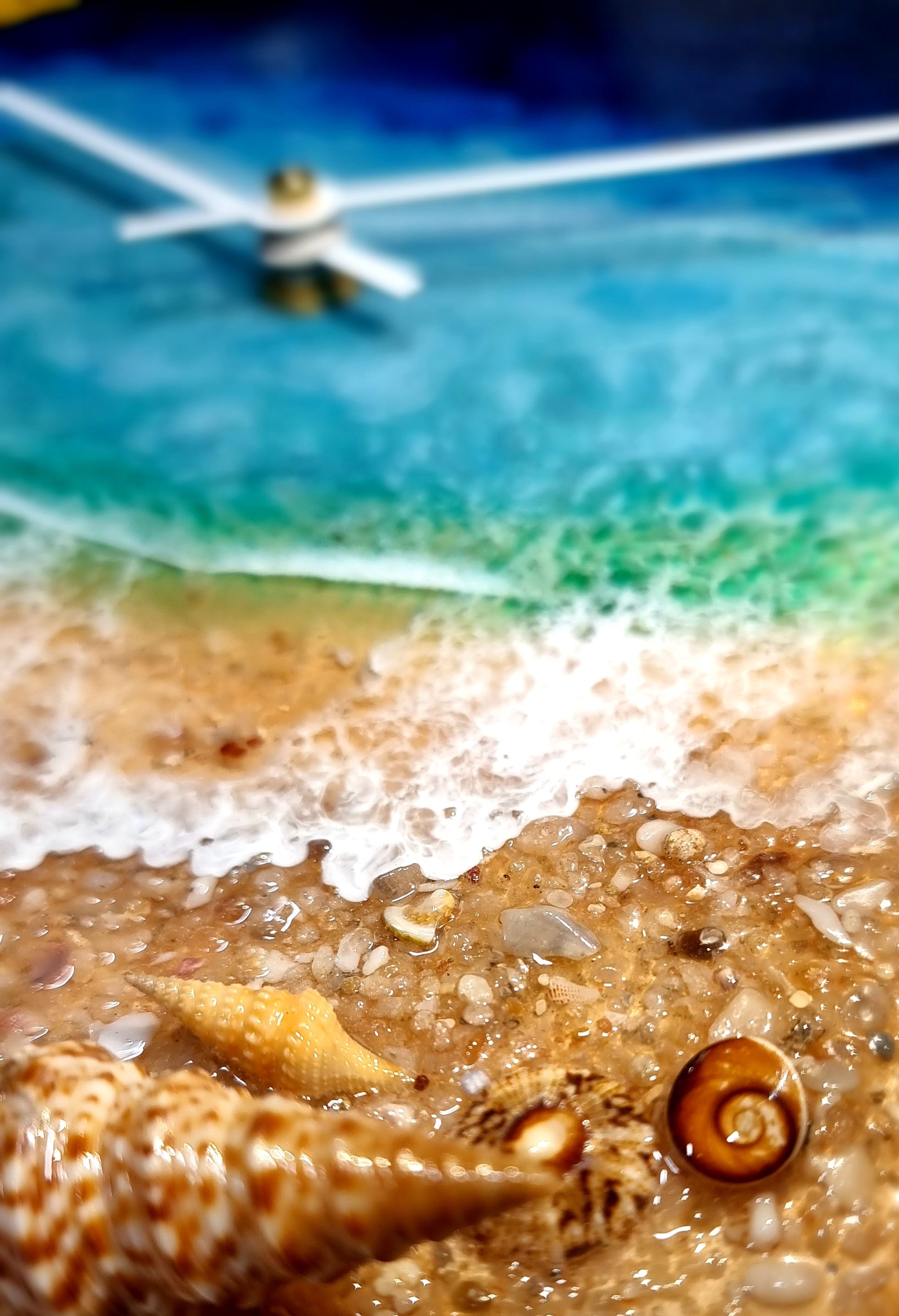 •Epoxy Resin •Wall Clock •On Wood •OG Ocean Theme •Few Shells •Sand •3xWaves •Layers •Texture •Quartz Clock Mechanism •Silent •Hands Reversable White/Black •Epoxy UV Protected •Ready To Hang •Size=28cmx2cm Regular •Signed And Numbered •Free Shipping Australia Wide