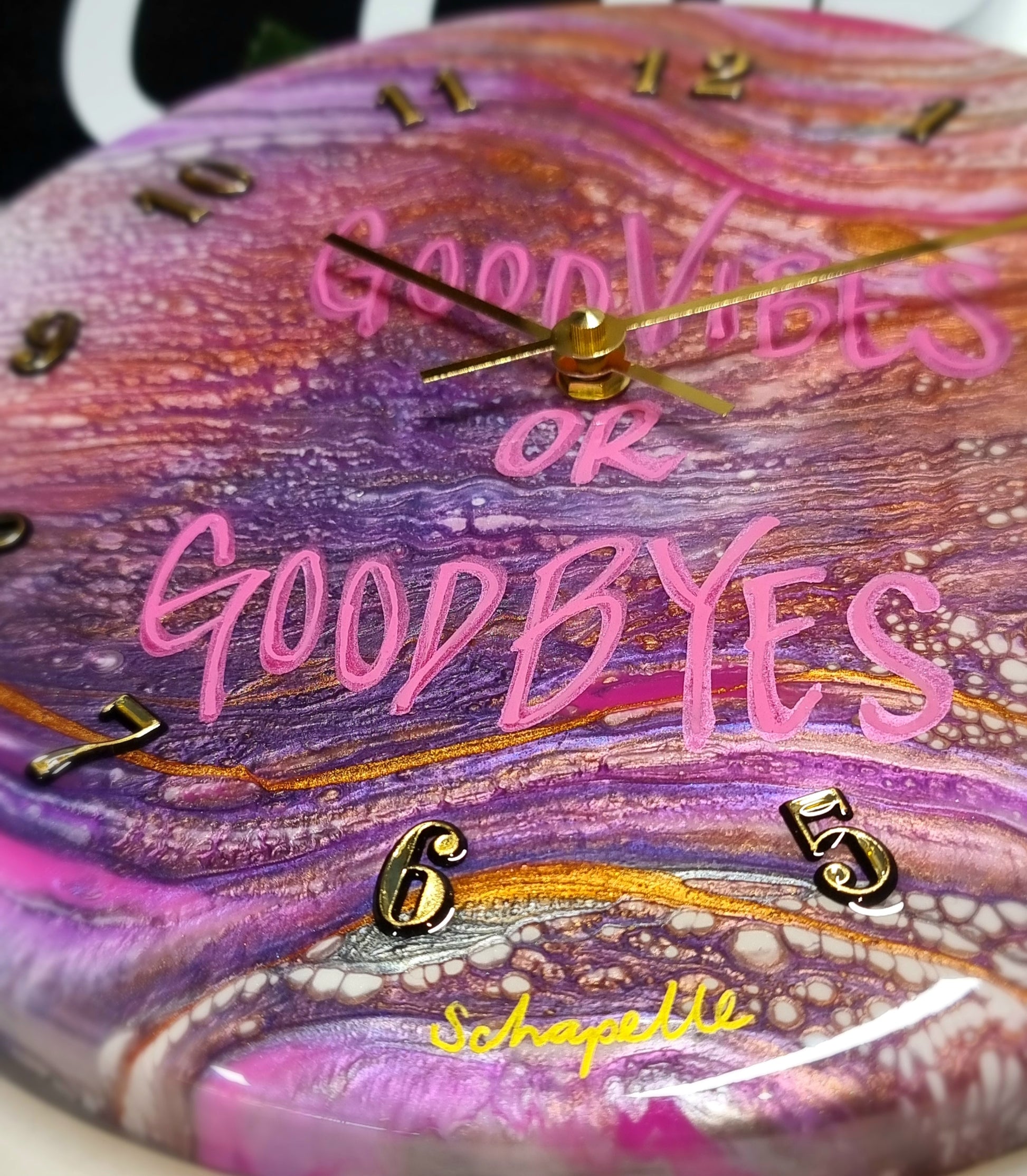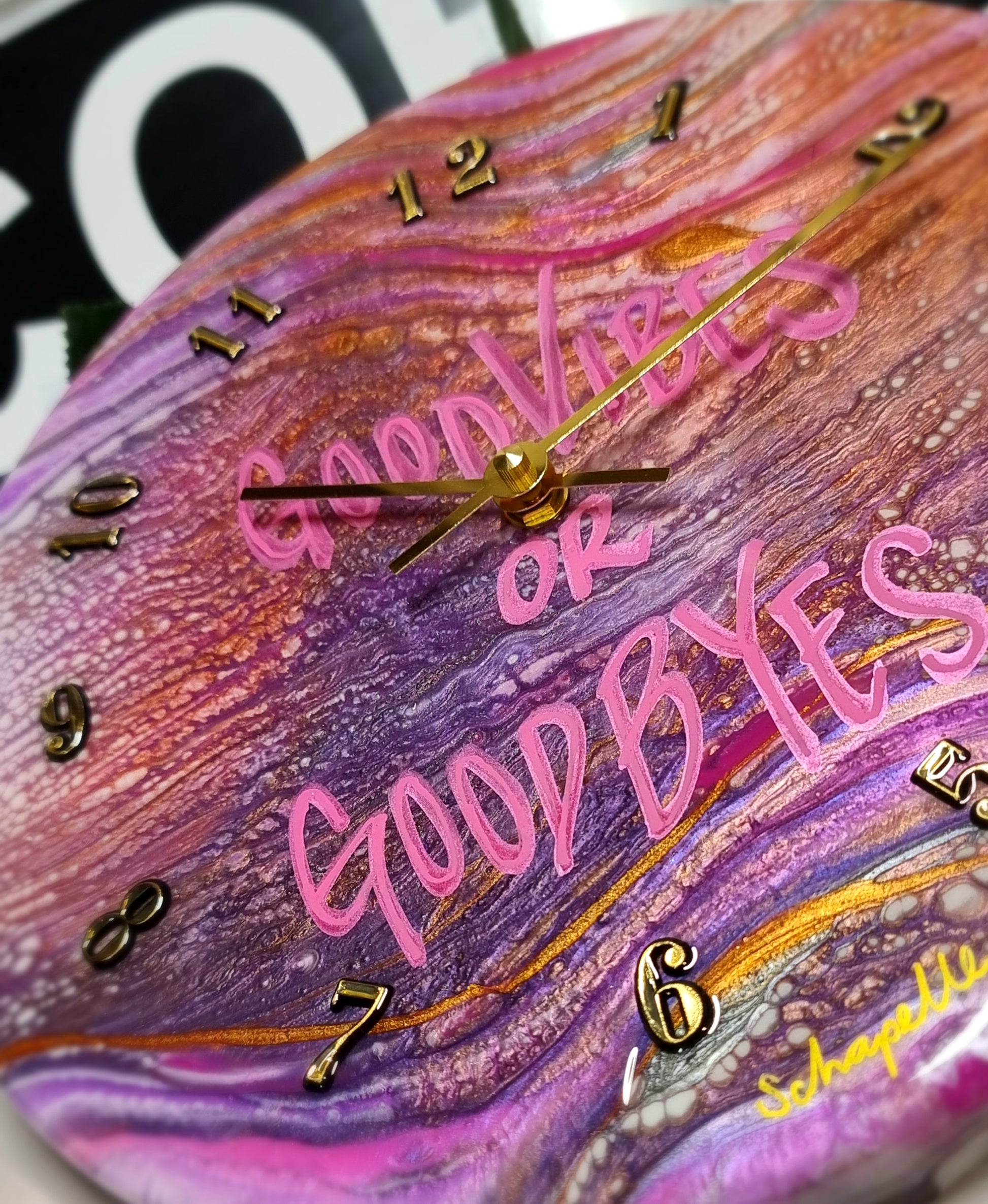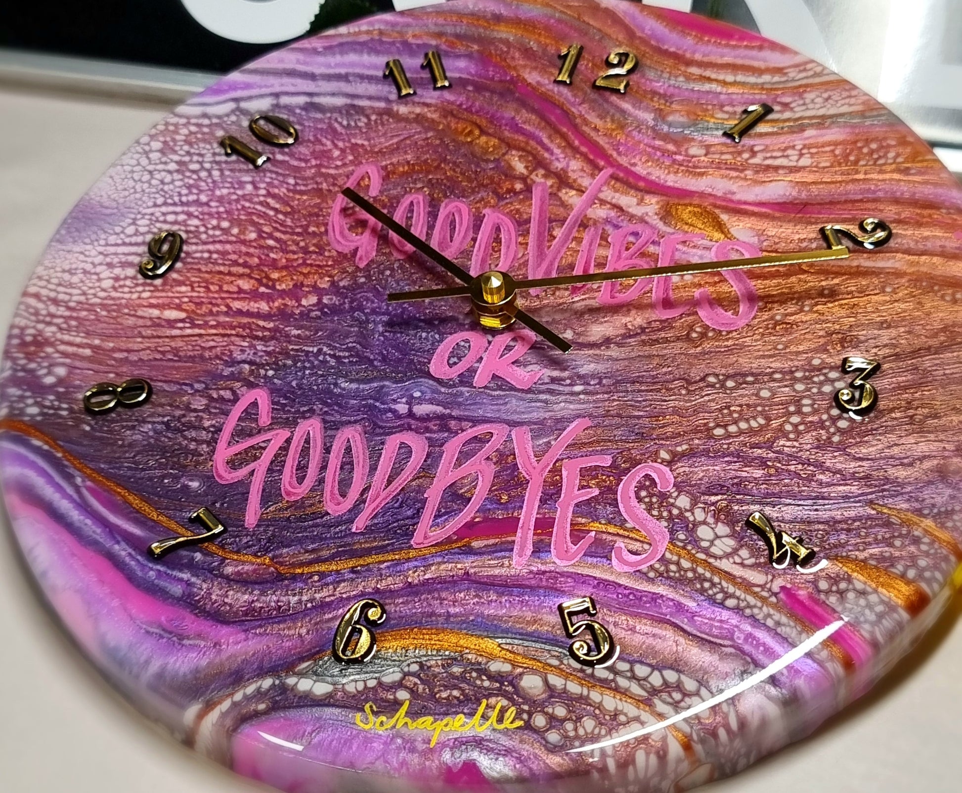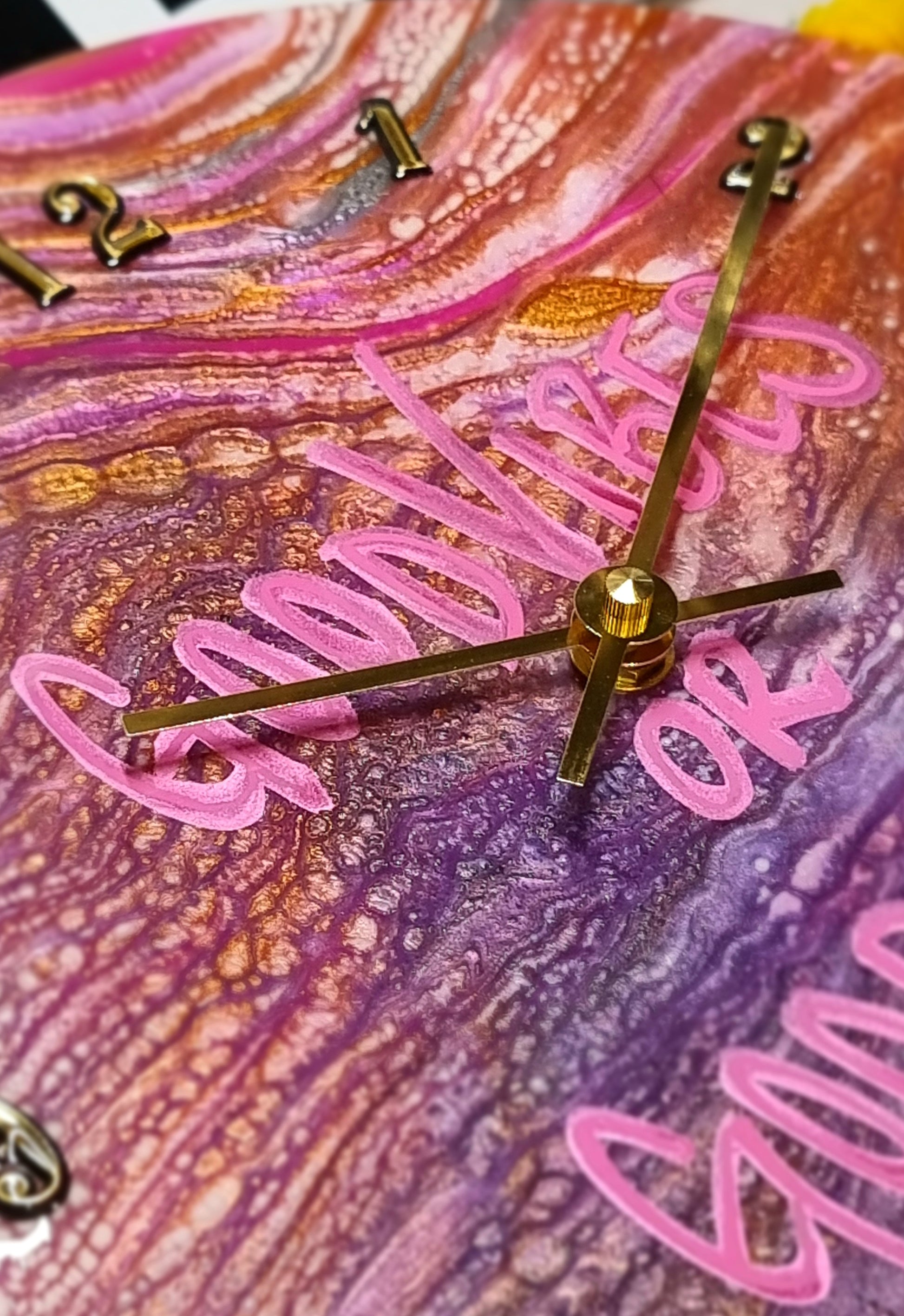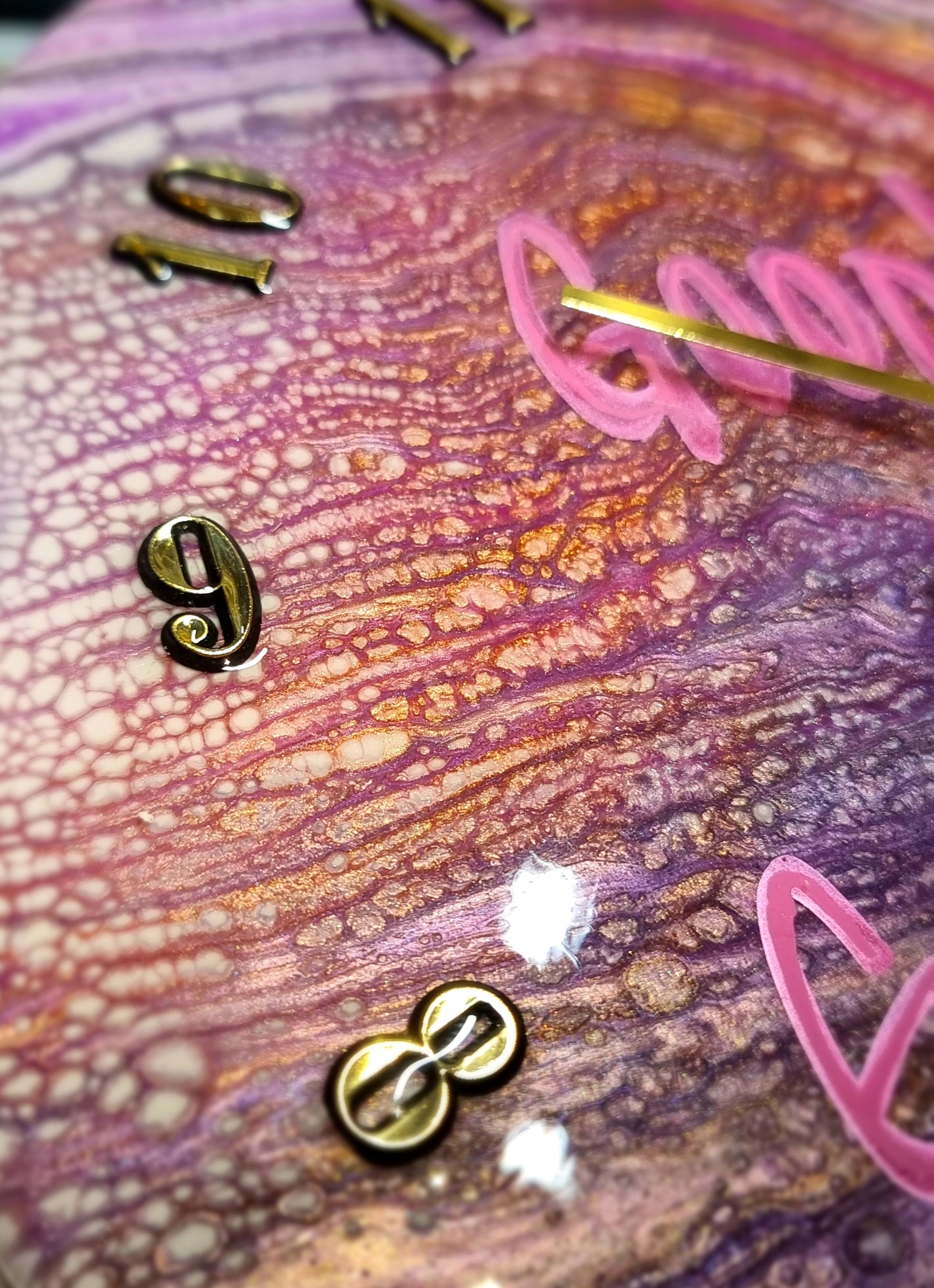 •Epoxy Resin •Wall Clock •On Wood •Colours=White,Pink,Magenta,Purple,Silver, Gold •GoodVibes Or GoodByes •Quartz Clock Mechanism •Silent •Quality Gold Hands •Gold Numbers Complete •Epoxy UV Protected •Ready To Hang •Size=28cmx2cm Regular •Signed And Numbered •Free Shipping Australia Wide •Made With Love By Myself 💙
